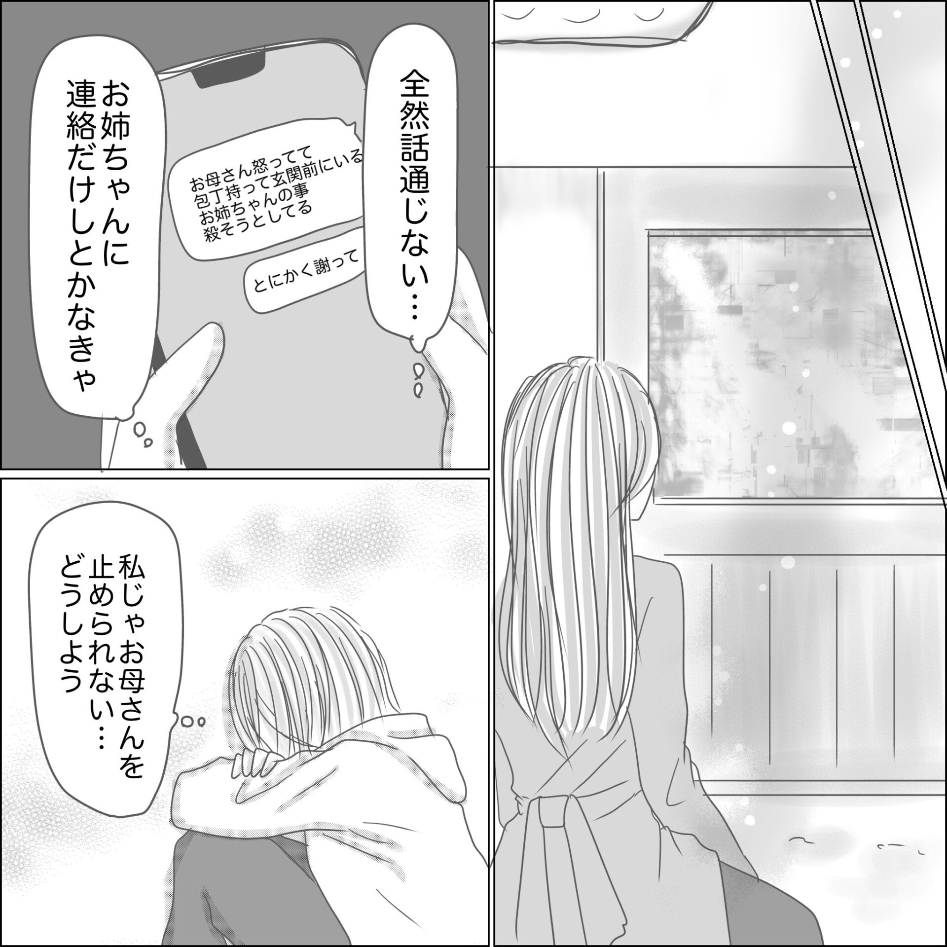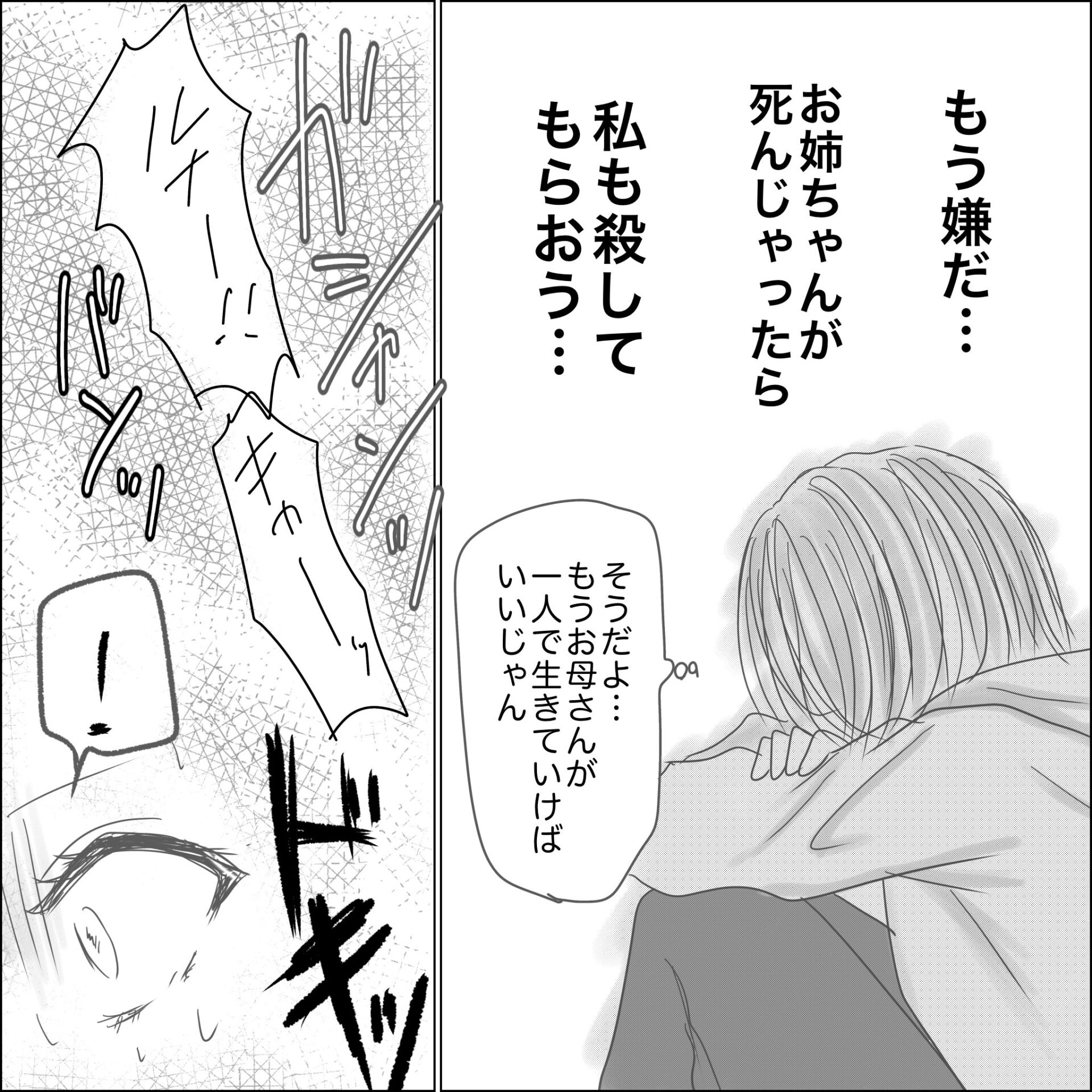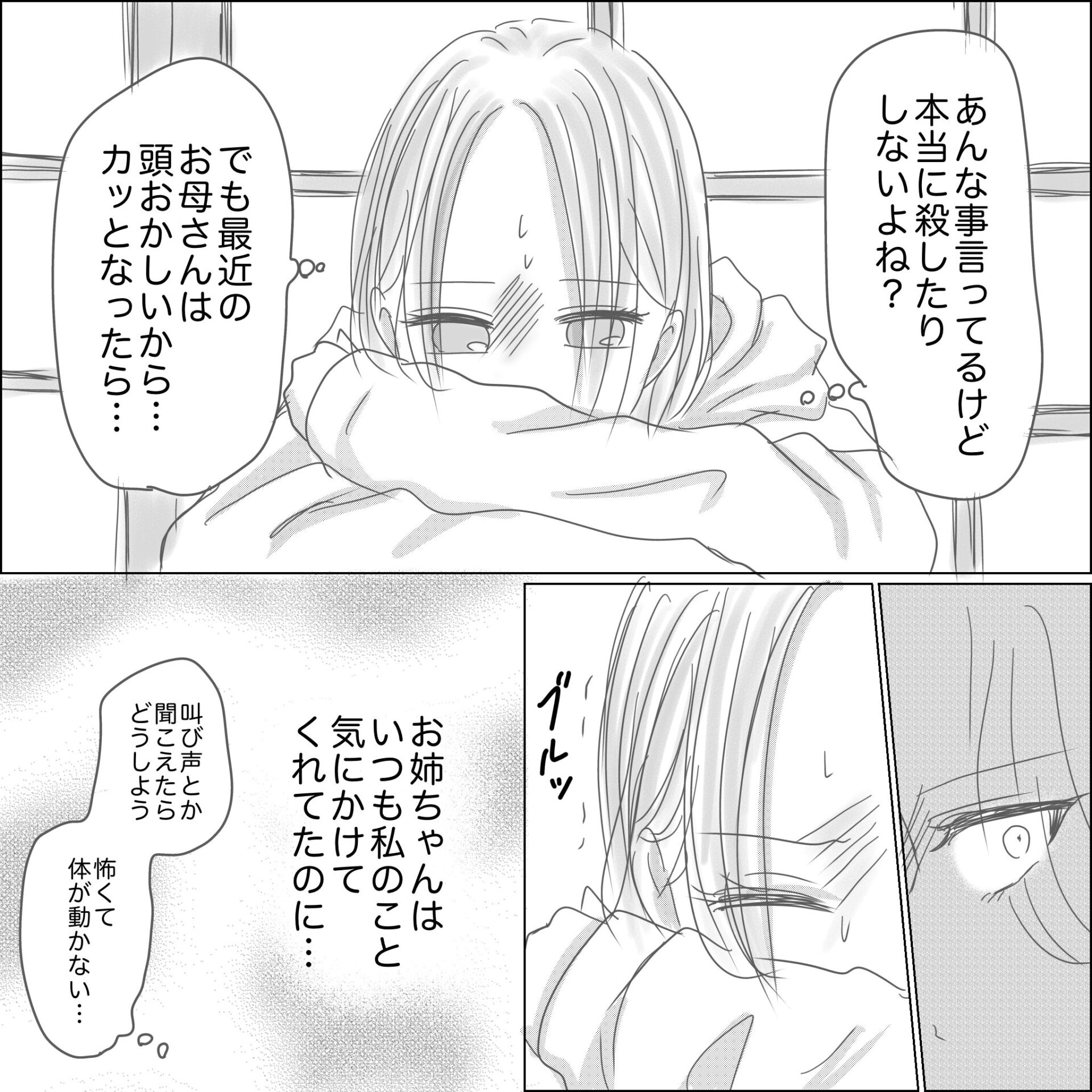スポンサーリンク おすすめ記事感情を殺して生きた日々(76)出産から5ヶ月で夫がいなくなりました(30)出産から5ヶ月で夫がいなくなりました(29)感情を殺して生きた日々(75)出産から5か月で夫がいなくなりました(28) 感情を殺して生きた日々(76) エッセイ漫画 2025.11.19 スポンサーリンク 広告 広告 あとがき 下の部屋で母が姉を 殺しているかもしれないと思いながらも その光景を見てしまったらと 怖くて何もできず… 叫び声が聞こえないように 耳を塞いで待機していた時間は 頭がおかしくなりそうでした。 22