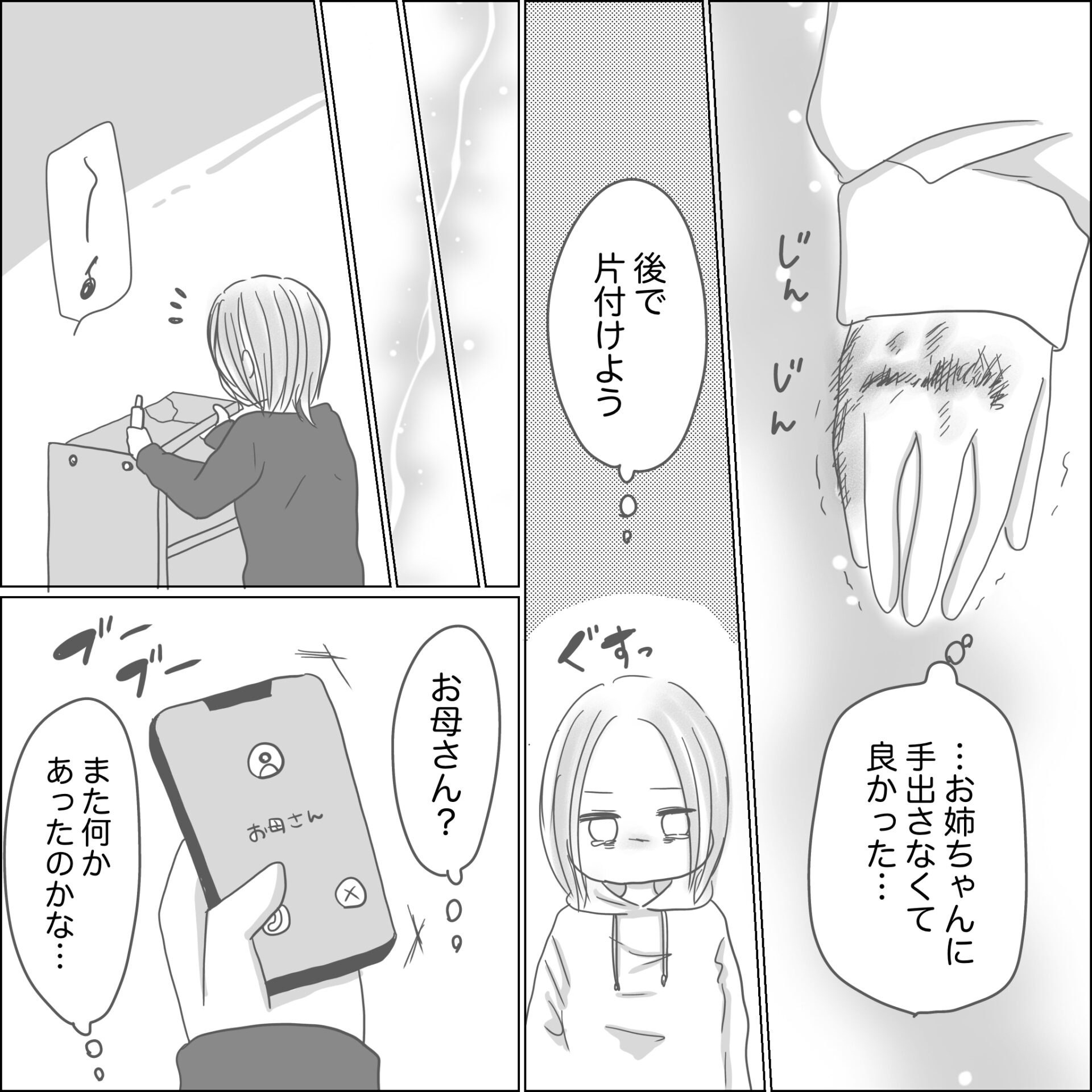 スポンサーリンク おすすめ記事感情を殺して生きた日々(78)出産から5ヶ月で夫がいなくなりました(35)感情を殺して生きた日々(77)出産から5か月で夫がいなくなりました(34)出産から5か月で夫がいなくなりました(33) 感情を殺して生きた日々(78) エッセイ漫画 2026.03.06 スポンサーリンク 広告 あとがき 一度怒りのスイッチが入ると 頭が真っ白になって衝動のまま 暴れてしまうことがありました。 もしその感情を人に向けてしまったら 取り返しがつかなくなりそうで とても怖かったです。 37