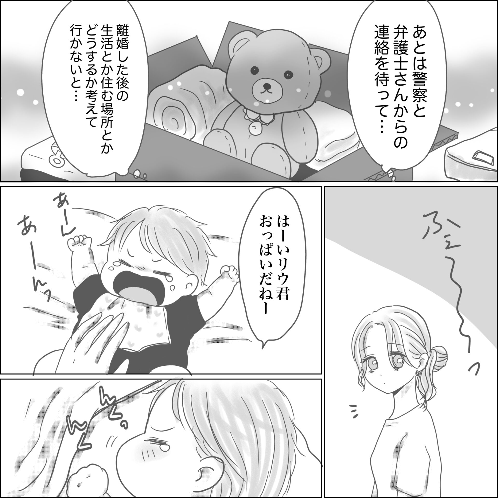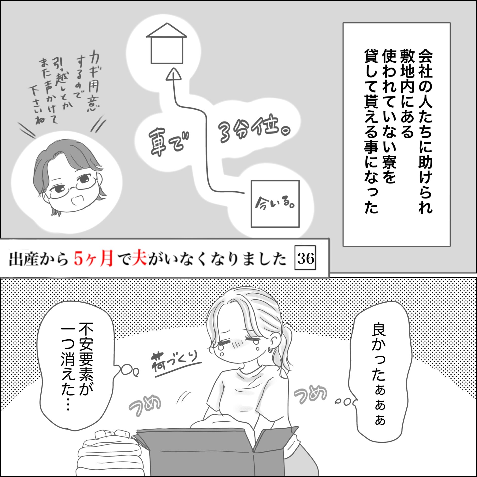 スポンサーリンク おすすめ記事出産から5ヶ月で夫がいなくなりました(36)感情を殺して生きた日々(78)出産から5ヶ月で夫がいなくなりました(35)感情を殺して生きた日々(77)出産から5か月で夫がいなくなりました(34) 出産から5ヶ月で夫がいなくなりました(36) エッセイ漫画 2026.03.10 スポンサーリンク 広告 広告 あとがき 住む場所と保釈金問題が一旦解決。 ストレスからかこの時 母乳が出なくなりかなりへこみましたが😢 先が見えてきた事で何とか心折れずに 踏ん張れました。 32