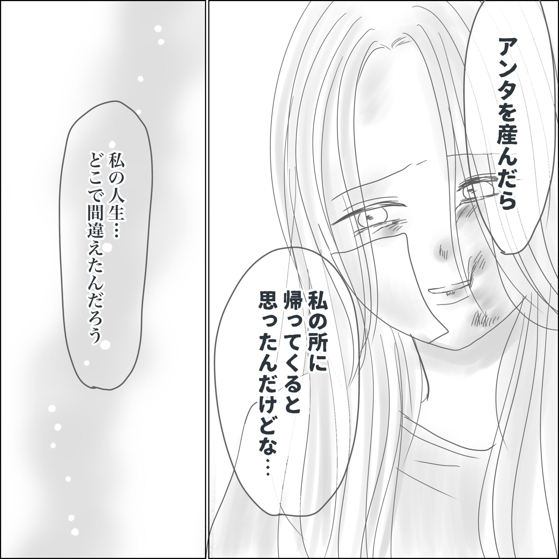 スポンサーリンク おすすめ記事感情を殺して生きた日々(81)感情を殺して生きた日々(80)出産から5か月で夫がいなくなりました(37)感情を殺して生きた日々(79)出産から5ヶ月で夫がいなくなりました(36) 感情を殺して生きた日々(81) エッセイ漫画 2026.04.02 スポンサーリンク 広告 広告 あとがき そんな事子どもに言わないでよ…。 忘れられない言葉です。 42